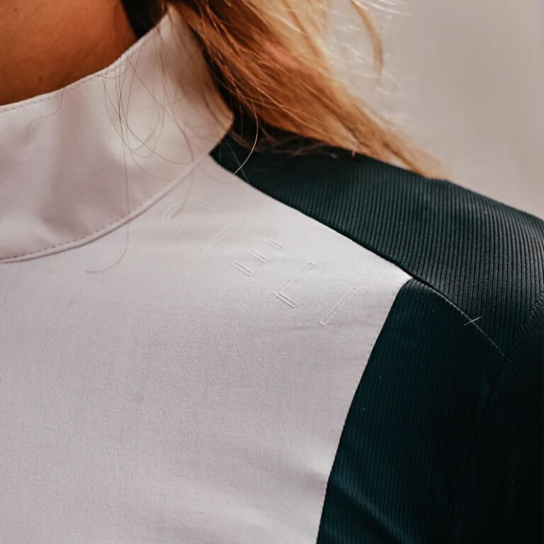 The Ava Long Sleeve Show Shirt merges performance technology with understated elegance. Made from a soft, technical ribbed fabric, it offers lightweight comfort and a flattering fit that moves with you in the ring.