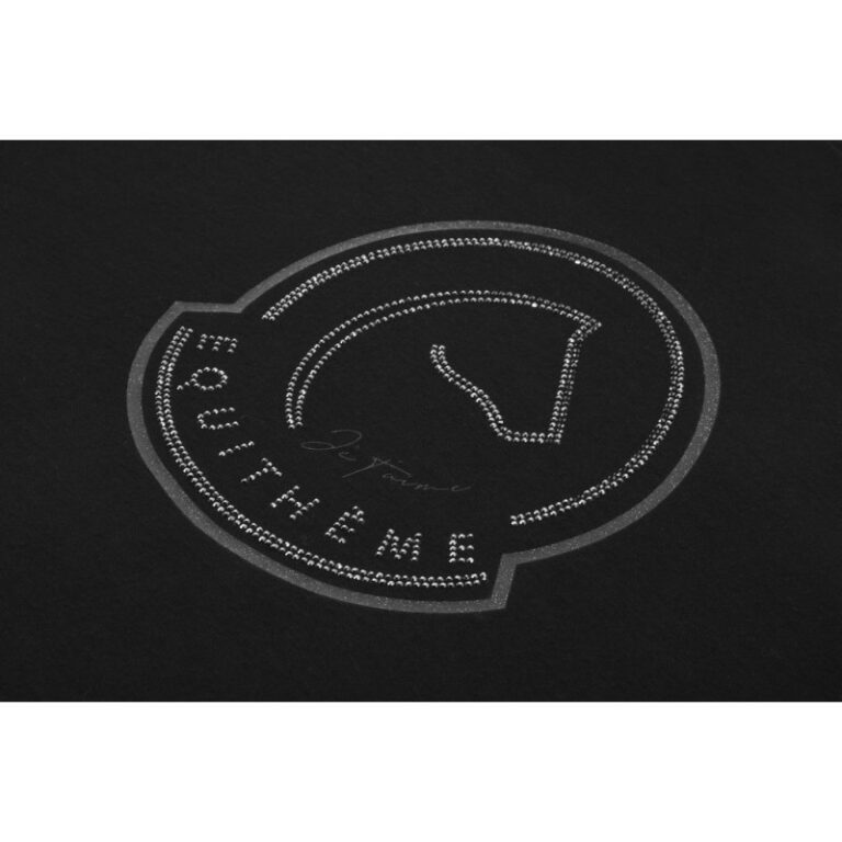 Its stretchy fit ensures freedom of movement both in and out of the saddle, while the rhinestone “Je t’aime” logo adds a sparkly, elegant touch. With its modern fitted cut and lightweight feel, it’s perfect for everyday wear, riding lessons, or pony club days.