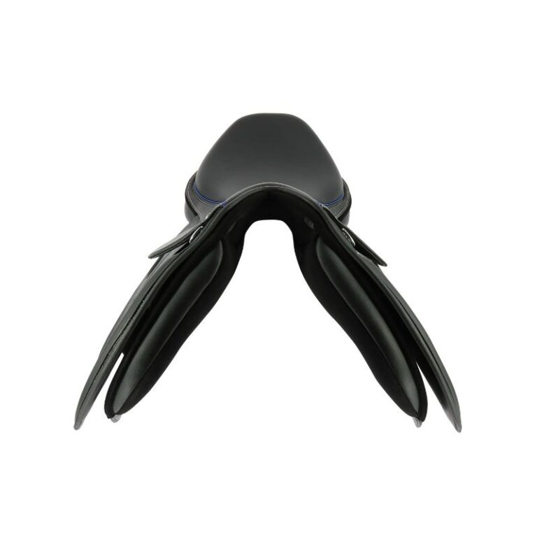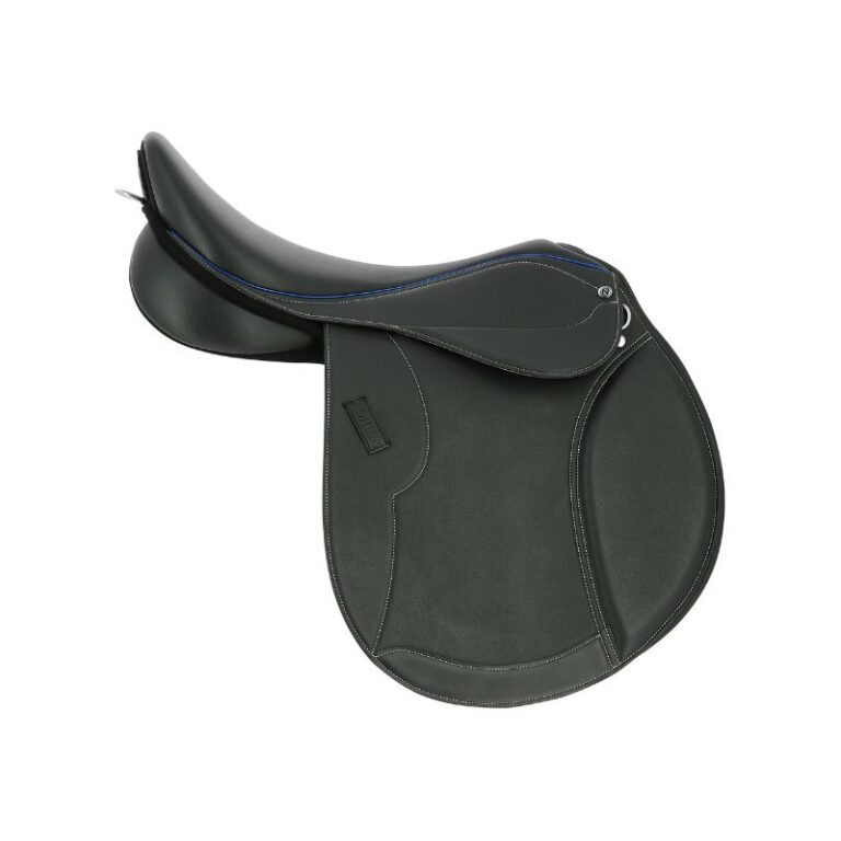 Its reinforced lower flap with a non-slip texture provides durability and grip during training or competition. The PVC girth straps, securely mounted on rings, add strength without compromising flexibility. For ultimate rider support, the interchangeable front and rear blocks can be repositioned with hook-and-loop straps.