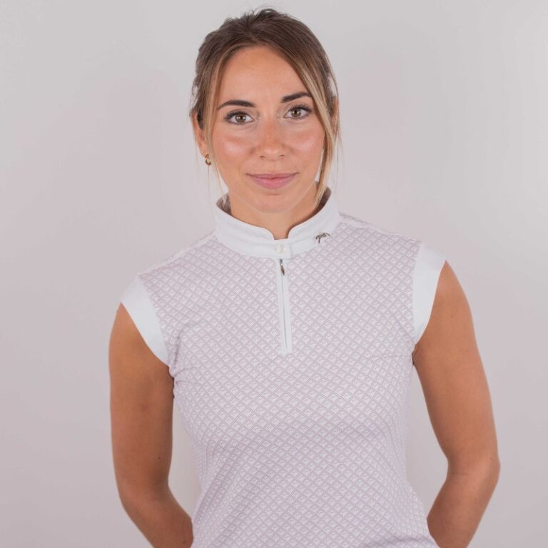 The shirt is beautifully finished with Pénélope logo patterns subtly printed across the fabric, adding a refined and feminine touch without overwhelming your look. Ideal for wearing under your show jacket or on its own, the Seville shirt ensures you stay comfortable and stylish on even the busiest competition days.