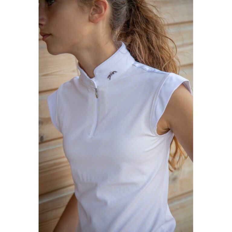The PENELOPE Seville Show Shirt offers the perfect blend of elegance, comfort, and performance for the competition arena. Designed with short sleeves and a clean white collar, it features an invisible front zipper that creates a smooth and polished silhouette when fastened.