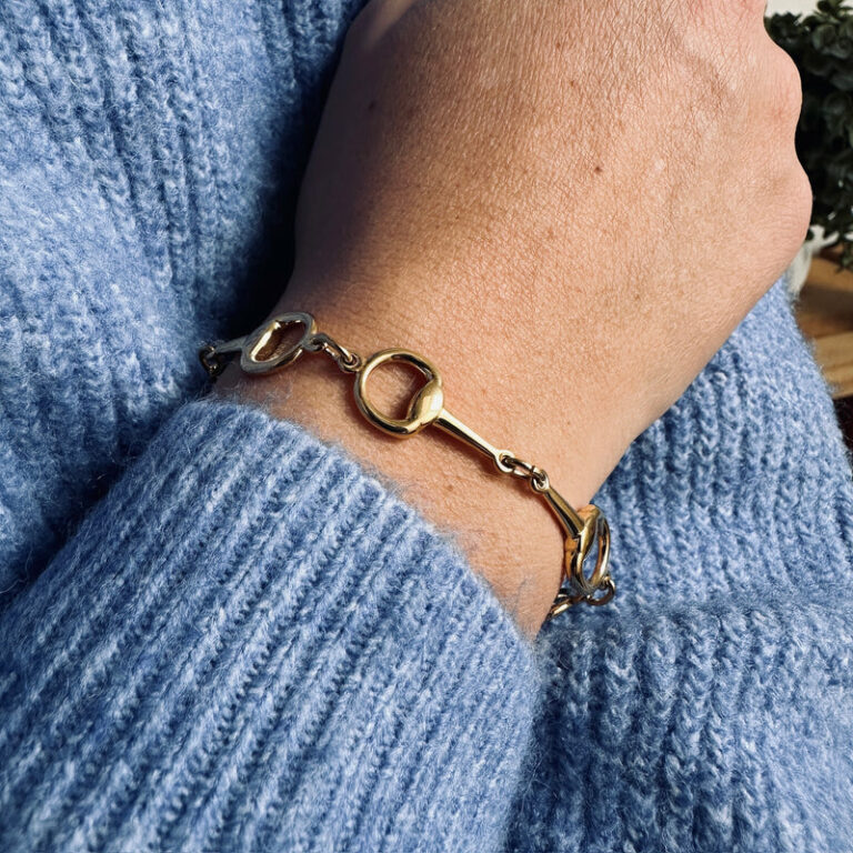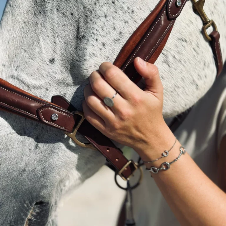 The Pépito Horse Bit Bracelet is a true classic in equestrian-inspired jewellery. Crafted from high-quality stainless steel, it features a series of miniature horse bits — a subtle yet stylish nod to the equestrian lifestyle. Its sleek, polished finish adds a touch of sophistication, making it a versatile accessory for both everyday wear and special occasions.