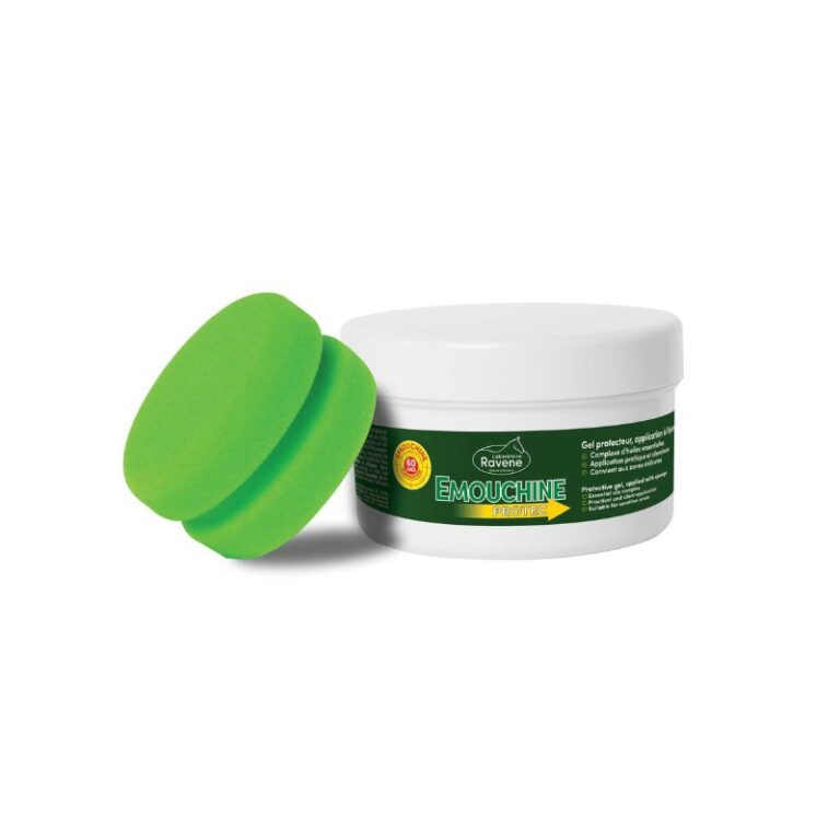 RAVENE Émouchine Protec Gel is the ideal insect repellent for horses that are sensitive to sprays or noise. Presented in a handy pot with an included sponge, this gel allows for quiet, controlled application, making it perfect for anxious or head-shy horses.